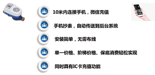 蓝牙水表的问世,实现了“缴费不出门”的智慧供水服务。用户只需使用微信小程序,即可坐享水费缴纳、用水账单查询、余额查询,电量不足提醒等人性化的”智能水服务”,缴费无需东奔西跑,无需排长队!